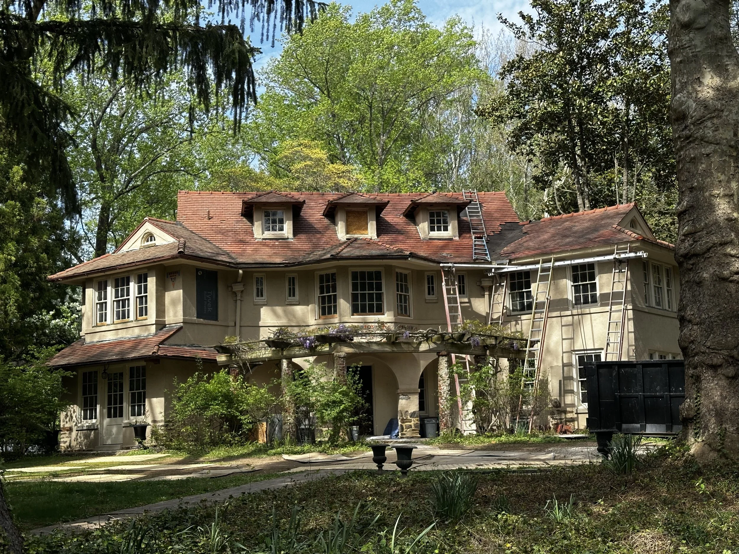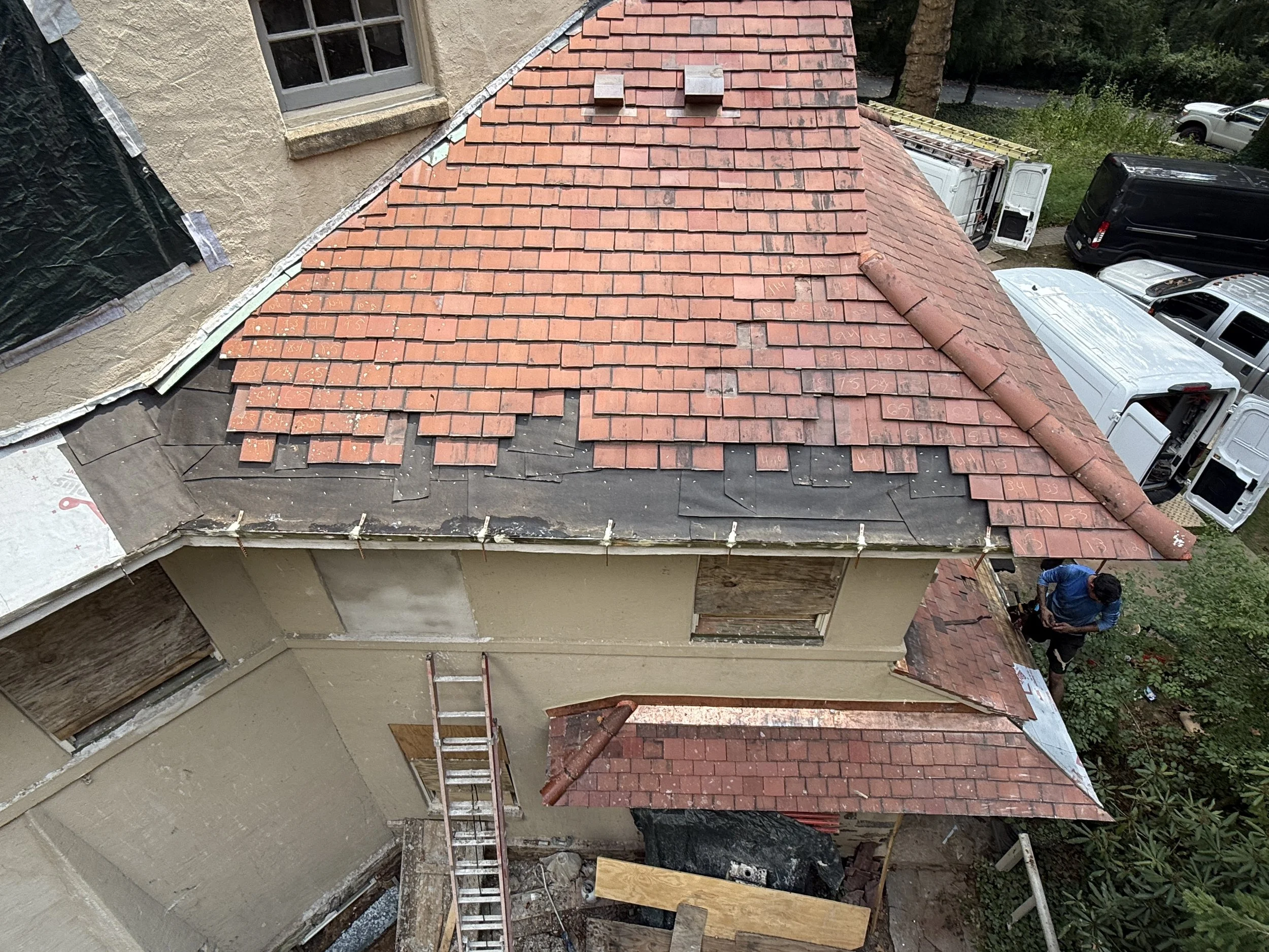 Tile roofing installation on historic home in Philadelphia suburbs